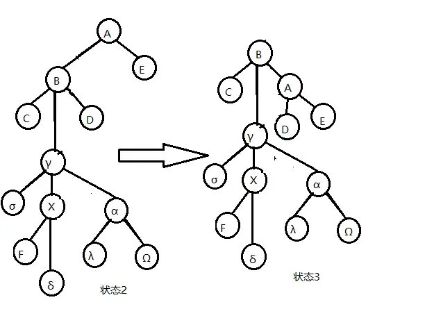 若 \(x\) 的爷节点有一个右儿子,则将点 x 和爷节点的右儿子互换,更新信息,然后退出.