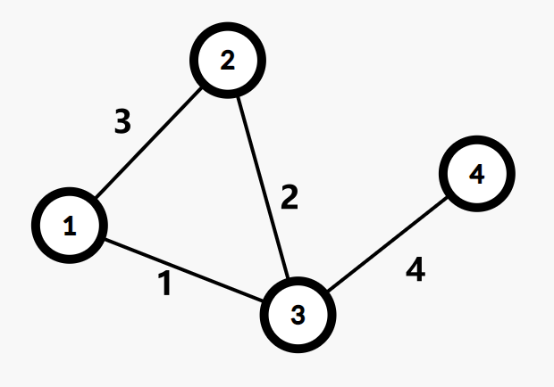 1 & \textbf{Input. } \text{The edges of the graph } e , \text{ where each element in } e \text{ is } (u, v, w) \\
