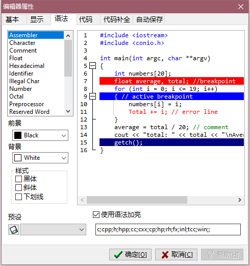 点击工具 -> 编辑器选项,然后选择 "语法" 选项卡,可以使用预设主题,也可以自行调整.