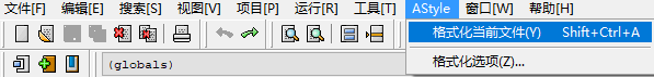 点击 Astyle-> 格式化当前文件 或 按 Ctrl+Shift+A 进行代码格式化.